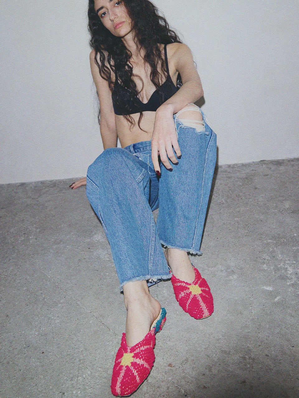 パンツスタイルのときも甲がさりげなく覗く絶妙なカッティングで、スタイリングに奥行きをプラス。