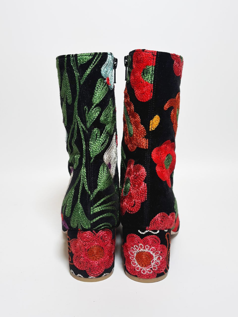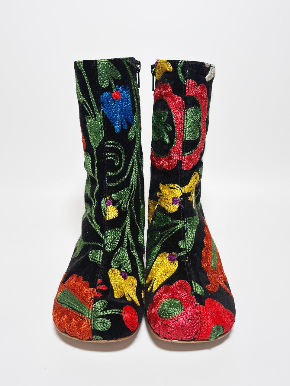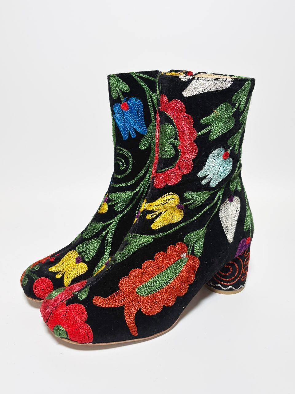 柄の美しさが足もとを華やかに彩り、シンプルなスタイリングにも自然と映えるブーツです。