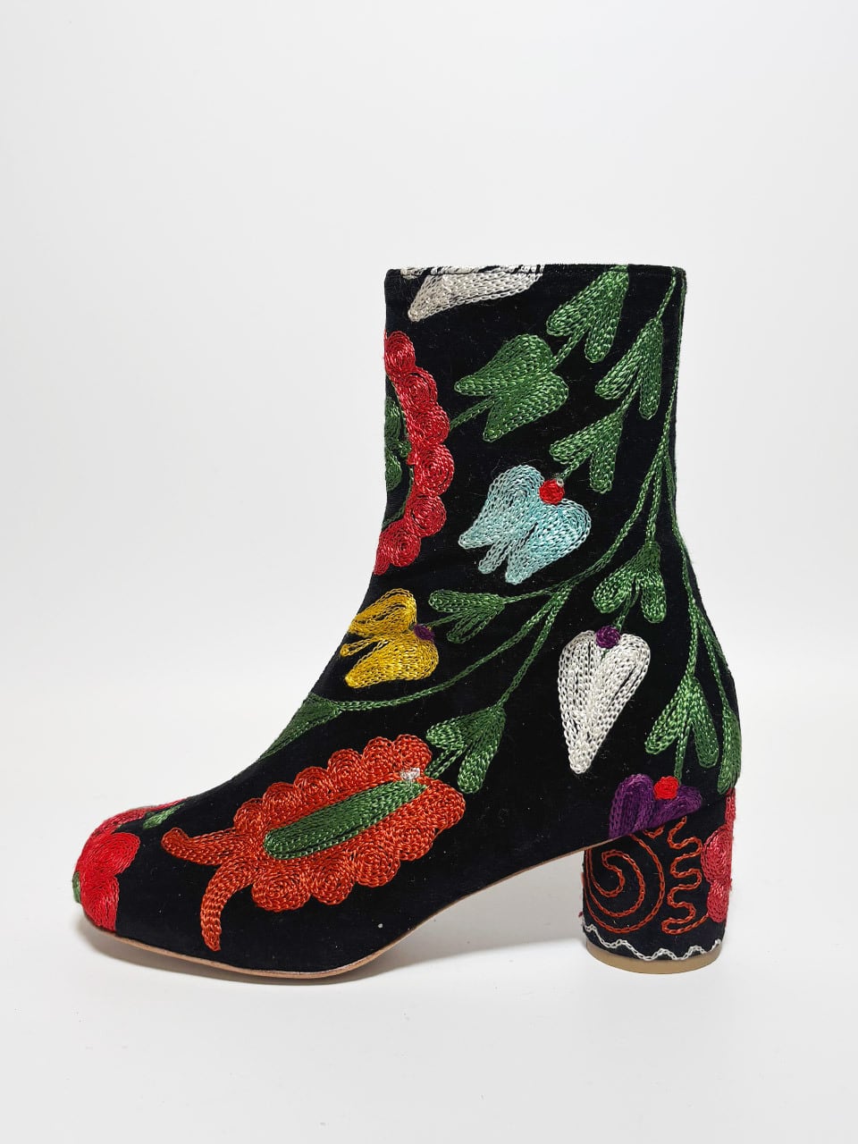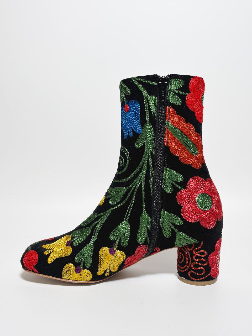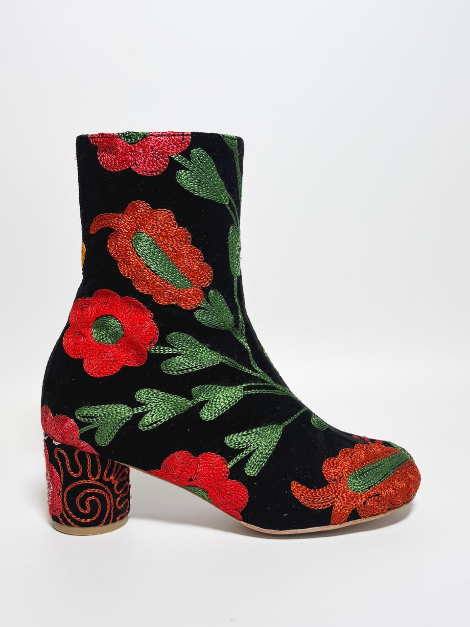 柄の美しさが足もとを華やかに彩り、シンプルなスタイリングにも自然と映えるブーツです。