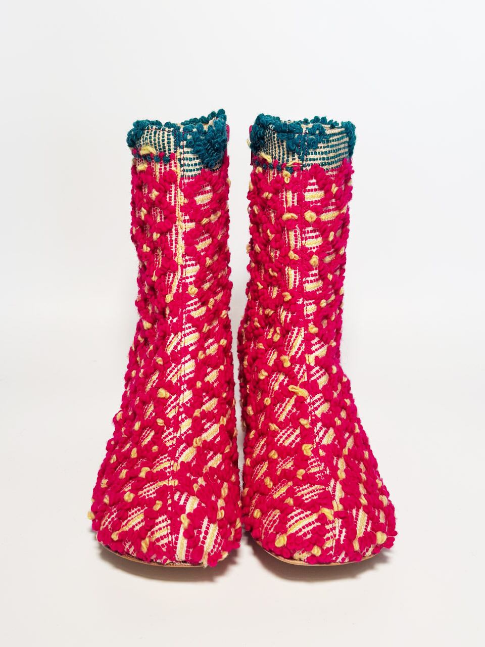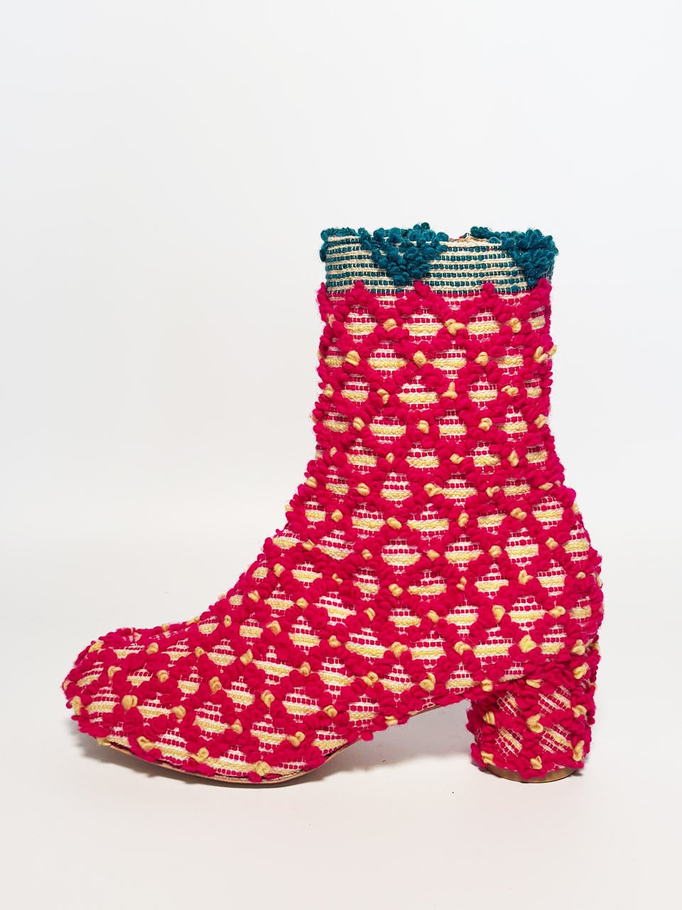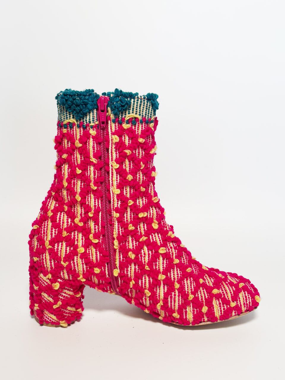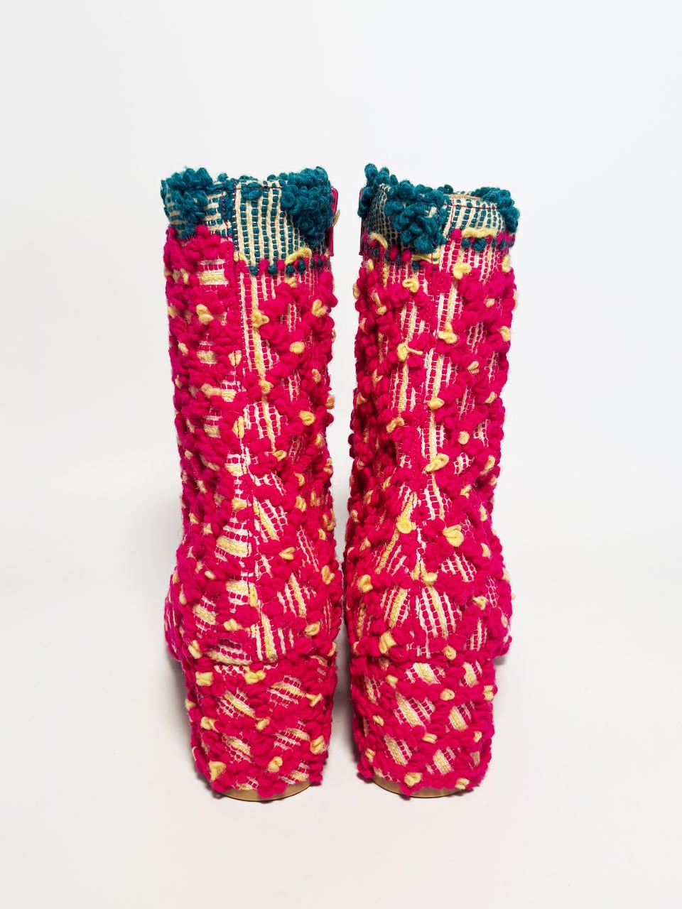 柄の美しさが足もとを華やかに彩り、シンプルなスタイリングにも自然と映えるブーツです。
